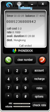 Telleasy.SoftPhone : ● 这是最廉价的GW设备,工作在您的便携电脑上,拥有丰富的功能。 ![]() ● 也是最容易的方式来使用Telleasy低廉的通讯资费,在您的电脑上, 通过互联网可随时随地的呼叫全球的电话,特别是可以呼入,能接 听电话。 ● 还可以控制并随时召集分布在不同地区和国家的人员随时参加电话 会议,可同时呼叫Telleasy 号码、普通固定电话、手机,有效的节 省会议成本。 ● 另外还可以将电话会议的通话录音保存在电脑上,以备存档。 ● 更详细的信息可访问 Telleasy .Conf 。 |